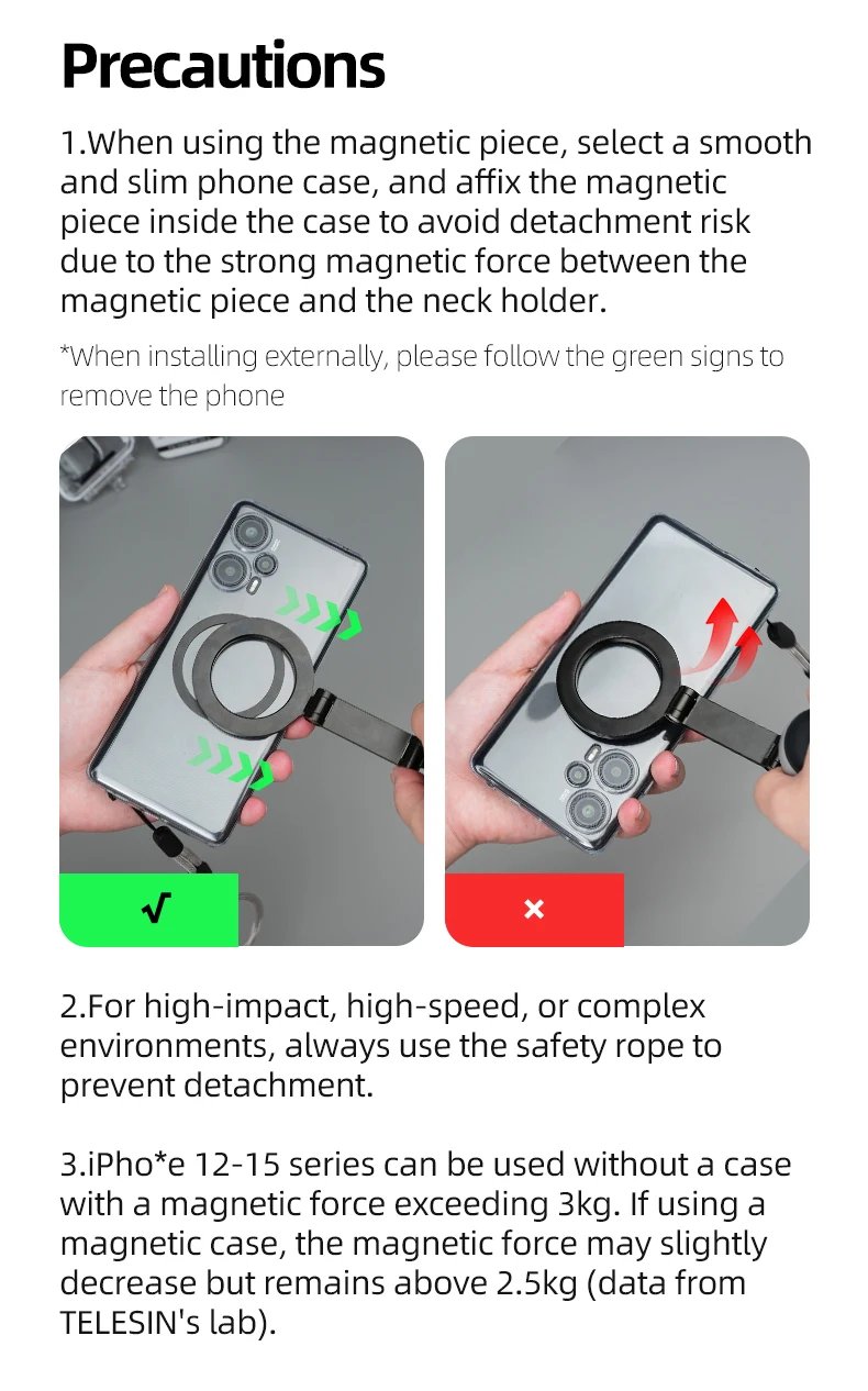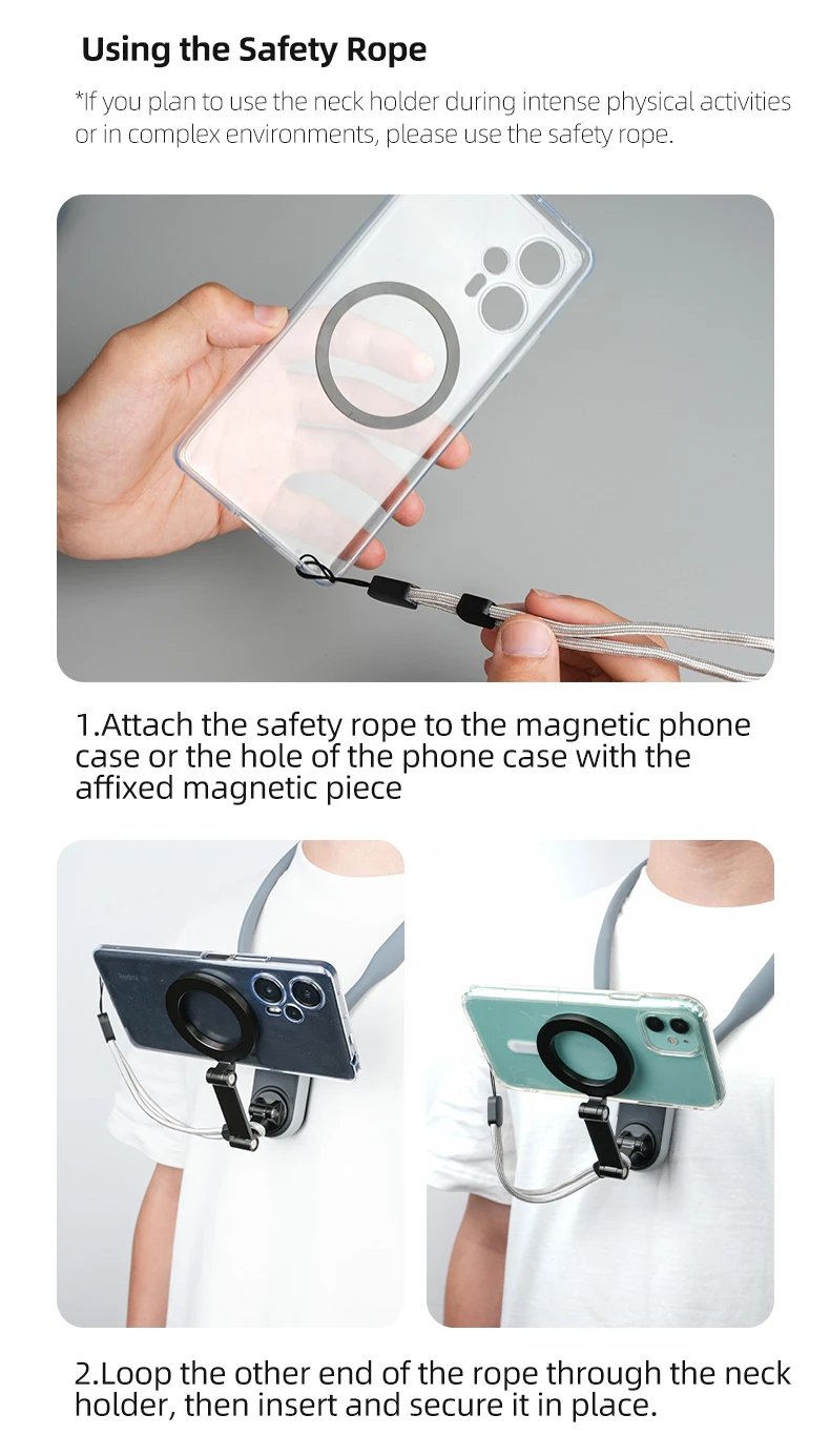 Adaptable to diverse scenes, our neck mount is perfect for daily vlogging, jogging, travel, hiking, UGC and more. The included safety rope ensures worry-free use, preventing accidental drops for a seamless shooting experience in any situation.